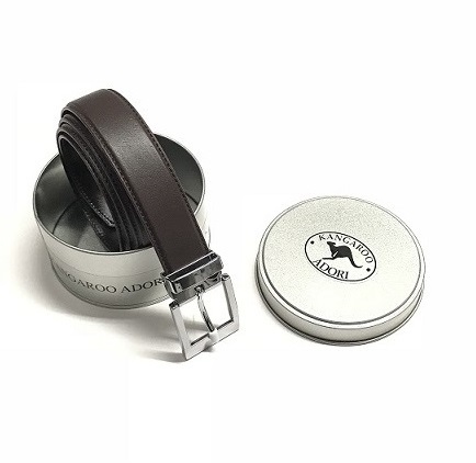 Kangaroo Leather Belt with Stylish square buckle in either gold or silver finish. This is an extremely popular dressy belt, presented in a lovely tin container,excellent gift concept and easy to display. Removable buckle to adjust length .